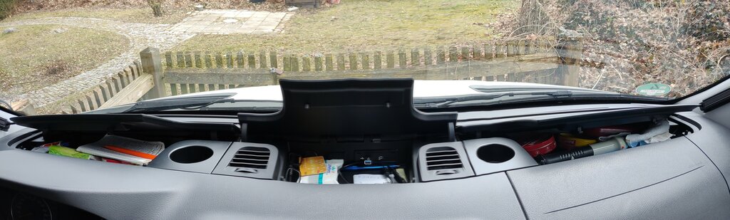 Für einen Betrag, über den ich gerne schweigen würde, hab ich zwei zusätzliche Klappen bei Mercedes erworben: Jetzt ist Schluss mit den offenen Ablagen, deren Inhhalt sich in der Winschutzscheibe spiegelt und der ggf. Begehrlichkeiten weckt, wenn man nicht aufpasst.
