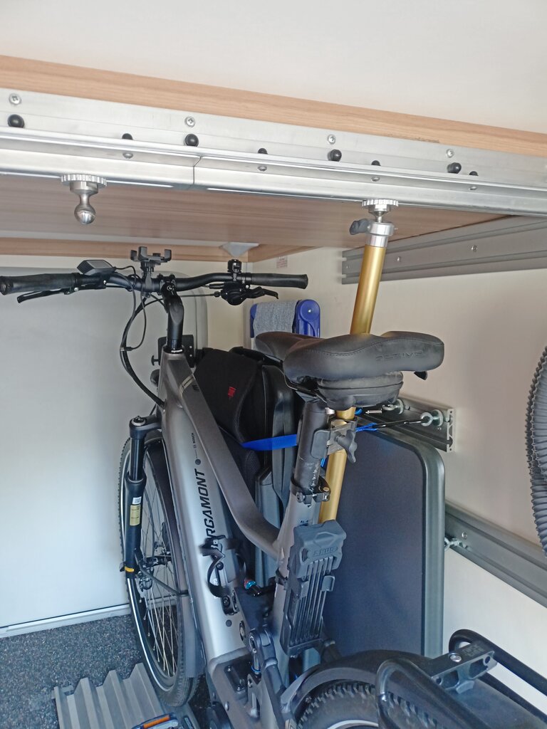 In unseren Knaus stelle ich 2 "normale" E-Bikes einfach rein ... Ohne etwas zu verdrehen, klappen oder absenken bzw zu demontieren.