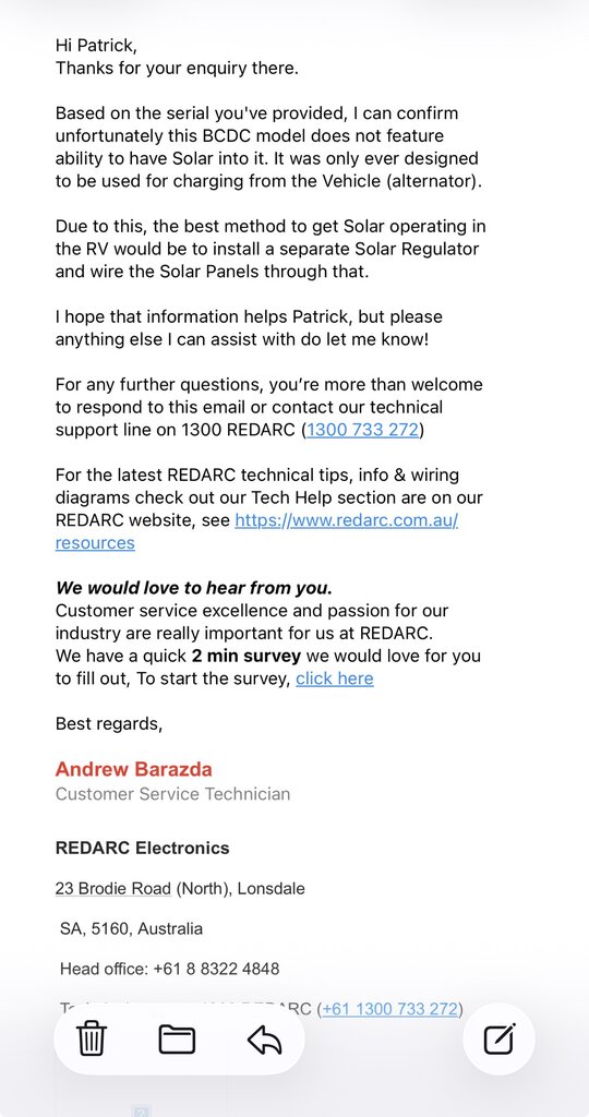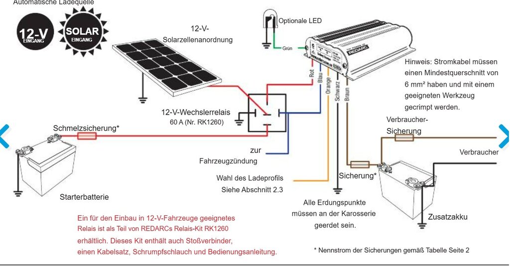 Die Redarc mit zusätzlichem Mppt Solarregler (dickes gelbes Kabel) haben normalerweise ein "D" im Namen für dual.