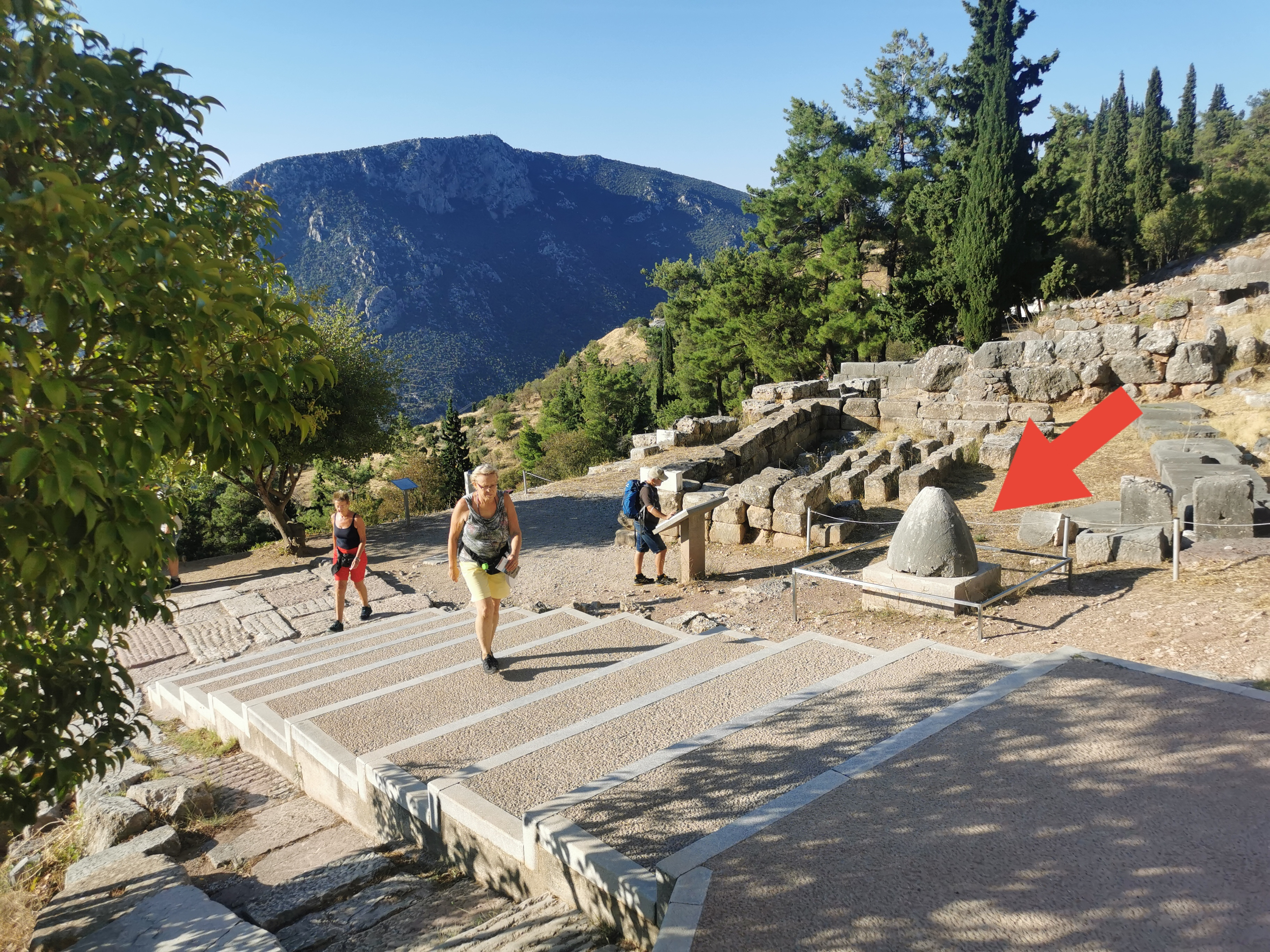 Dem Mythos zufolge ließ Zeus zwei Adler von je einem Ende der Welt fliegen, die sich in Delphi trafen. Seither galt dieser Ort als Mittelpunkt der Welt.