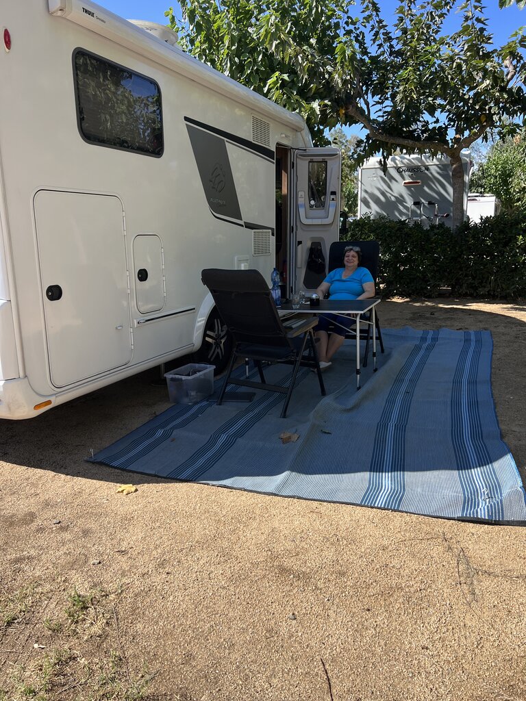 Um ca. 16:00Uhr waren wir dann am Campingplatz. Eine nette Rezeptionistin hat uns dann einen schönen Platz gegeben. Wir haben uns so hingestellt, dass wir am Nachmittag Schatten vom Wohnmobil haben. Markise brauchen wir so nicht, was auch ganz gut ist, da es hier ordentlich weht. Soll aber laut Wetterbericht in den nächsten Tagen besser werden.